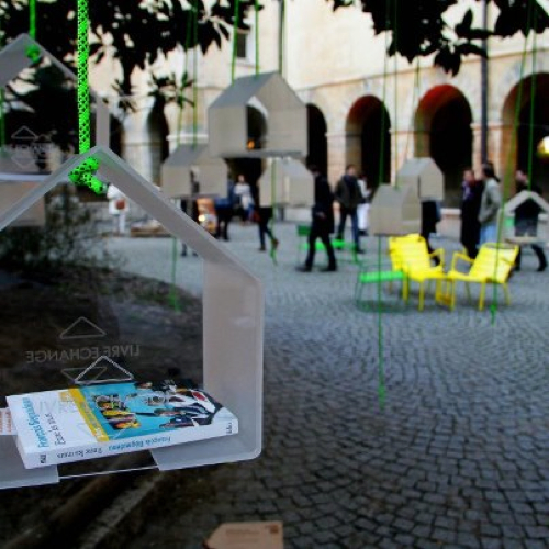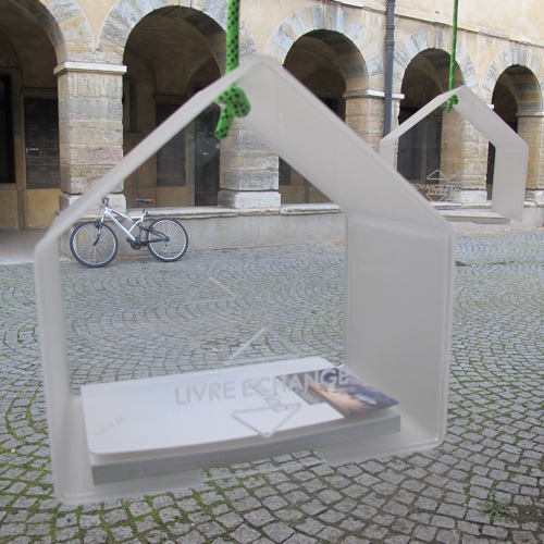 Une installation permanente composée de cabanes suspendues, dans lesquelles, les habitants des quartiers sont invités à déposer un ouvrage pour en prendre un autre...
